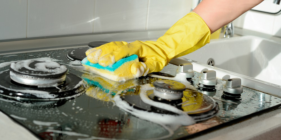 Professional kitchen deep cleaning service to remove grease, oil stains and dirt from slabs, tiles and sinks.