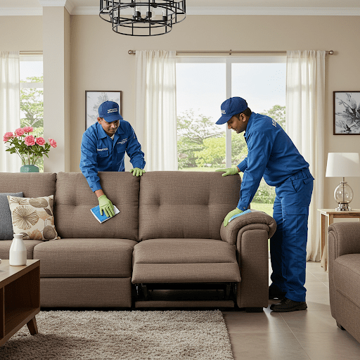 Premium sofa deep cleaning service for large L-shape sofas including stain removal, shampoo cleaning and complete sanitization for long lasting freshness.